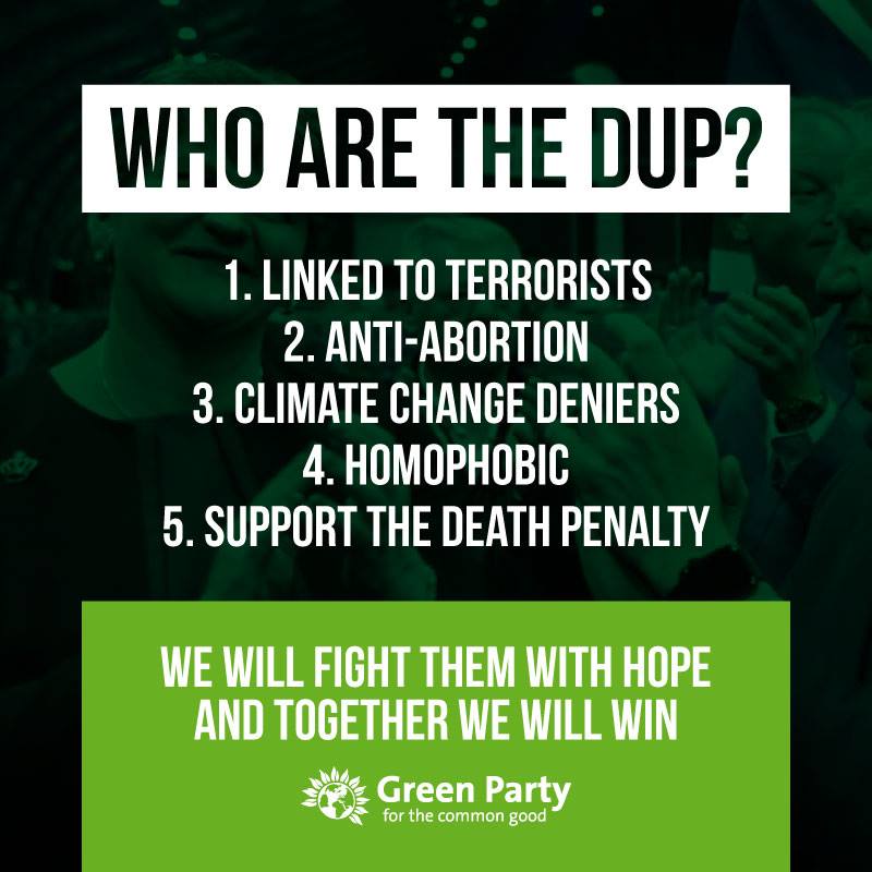 I suppose the above meme encapsulates some of the main objections to the DUP. No doubt others can be added, like teaching of creationism in school. Let me take these one by one, although I should pre-fix my comments – I am not an apologist for the DUP, who I hadn’t given much thought to before yesterday, and just prior to posting had to read up about on Wikipedia: