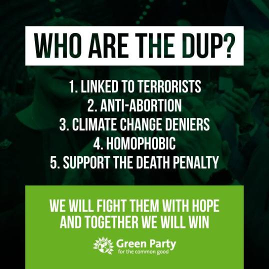 I suspect there will be many developments in the days to come and some with hitherto not considered DUP playing a part. While I have my qualms, Theresa May talking to Arlene Foster and coming to an accord so Conservatives can continue to govern seems reasonable to me. I doubt, incidentally, if the points above will be an issue. My main concern is DUP’s vision for Brexit could weaken negotiations. Yet for those concerned about social justice matter, DUP could help provide a corrective should the Tories seek to ignore these. Strange bed fellows and who would have thought it? Yet, DUP are more conservative than the Conservatives. Interesting times indeed!