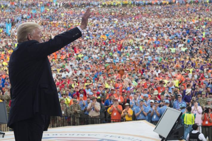 So back to Trump’s speech: some of it was very good and (sadly) I have to concur some of it was very bad. It was good Trump made an effort to attend in his busy schedule and that was in part at least was because of his belief of the character building aspects of the scout movement and that the movement can play an important part in raising the next generation of leaders. He made reference to several members of his administration who had been boy scouts. While this was not the time to mention it, “fake news” were unlikely to make mention of the 40,000 crowd that were overwhelmingly supporting Trump and enthusiastic. I also thought a lot of what he said was appropriate and if anything reinforced the entire scout law. I liked the way he drew upon his own experiences to encourage the boys to make the most of their lives. He rightly praised the dedication of those who help run scout groups as well as the boys themselves.
