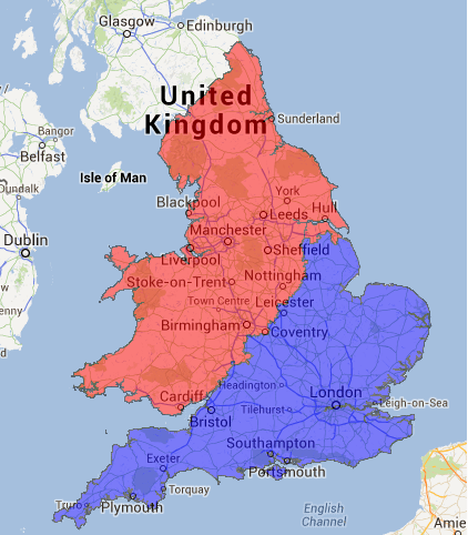 I have just spent 5 days sojourning in the North of England (2 days in Newcastle (conference), 3 days in Sunderland (visiting friends), including a trip to Edinburgh). It was a good experience and it got me thinking about the North South divide. According to Wikipedia: “In England, the term North–South divide refers to the cultural, economic, and social differences between: Southern England: the South-East and South-West, including Greater London and the East of England; Northern England: the North-East, Yorkshire and the Humber and the North-West including Merseyside and Greater Manchester. The status of the Midlands is often disputed; geographically, most areas of the Midlands are Northern.”