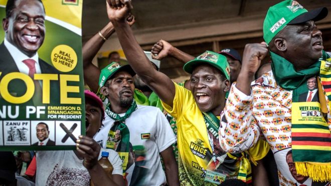 Online BBC is running one story though: “Zimbabwe election: Opposition calls poll results a ‘coup’.” “Zimbabwe’s opposition leader has said President Emmerson Mnangagwa’s election victory is a “coup against [the people’s] will”. Nelson Chamisa repeated his claim that the results announced late on Thursday night were fake, and said he had won Monday’s presidential poll”. One of my Zimbabwean Facebook friends posted: “You are not President of Zimbabwe at all. If you were you would not rush to send a congrats to yourself like this. Millions of Zimbabweans could have done that and not you. You clearly rigged this election. No ethics and values at all. We only congratulate leaders who are honest. Please spare us from all these lies. You were in power for 38 years and all you build was an army that killed people. You are a very cruel man. Matebeleland is mourning up to day because of you. Even Chigumba announcing the results could not put her head up. Noone who is principled will trust you at all. May those who got elected by masses of Zimbabwe be announced winners by the people and not junta.”