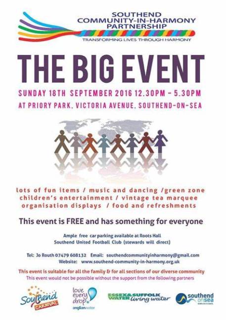 I suppose, looking back at my 20 year career as a more than part time community activist, one of my highlights is organising diversity events, including the Southend Community in Harmony “Big Event”. Things have moved on, to be sure. I no longer organise events and “the Big Event” no longer happens. Putting aside age and health issues, and given my rabid right wing (so I am told) views, I suspect my big event organising is now to be consigned to a not to be repeated past. But as they say, things do move on, and there are often things that happen to replace what has gone on before.