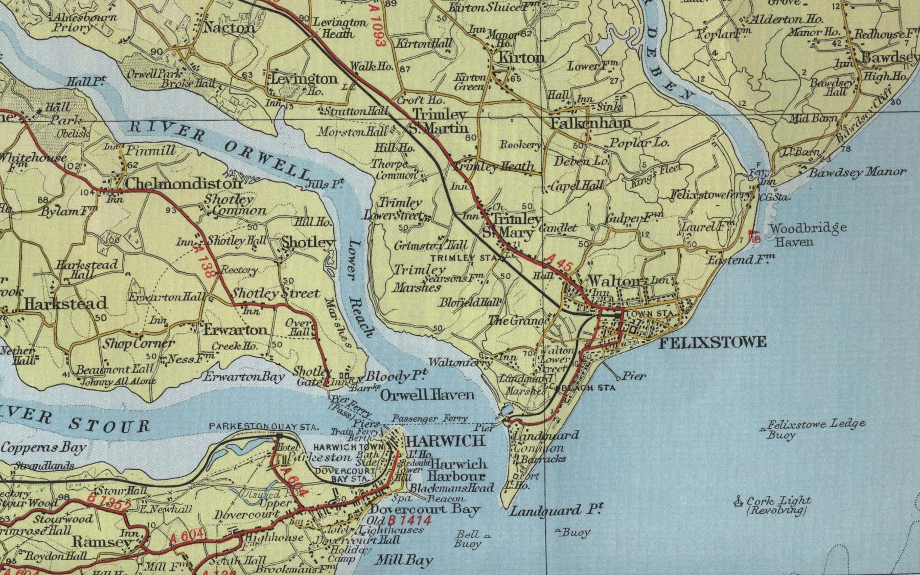 With reference to the map (below) Felixstowe is situated between two rivers (Deben and Orwell) and if you wanted to go up or down coast avoiding ferries (which weren’t running anyway) you would have to go miles inland first. We decided to first head toward river Deben (parking by the golf course) and pottered around, before doing the same with the river Orwell, parking in a long familiar site (Landguard) in the visitor centre car park, by the magical dock area near to which we have spent many an hour gazing out to sea at ships coming in or going out or watch with fascination some of the busy activity in the dock area. After a cuppa at the visitor centre café it was time to check in to our home for the next 7 days, doing so with no fuss. In the past, I might have thought exploring both extremities of the town before checking in, with only the tame in-between bits left, there was little more to do, but these days that is how we like it.