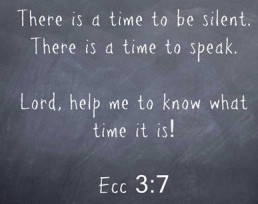 I am continually reminded of one of my favourite passages in the Bible about there being a time for everything and of a mantra I decided should define when to speak: is it true, is it necessary and is it kind? I sometimes fail on one of more of these points but the trick is to recognize when that happens and make amends. I was recently reminded that nice Christian conservative leaning types, unlike their nemesis, tend not to speak out even when bad things are happening. I think they assume those pushing bad things are also nice people, whereas the world is made up of fools, villians and good guys or at least mixtures of such. These lead people down the path of error, evil and slavery. When as I have done recently read books like Dark Agenda (reviewed here) and Righteous Indignation (reviewed here) I can see the consequences and missed opportunities of taking such a passive approach. And I am brought back to the all important question: knowing when to speak and when to be quiet?