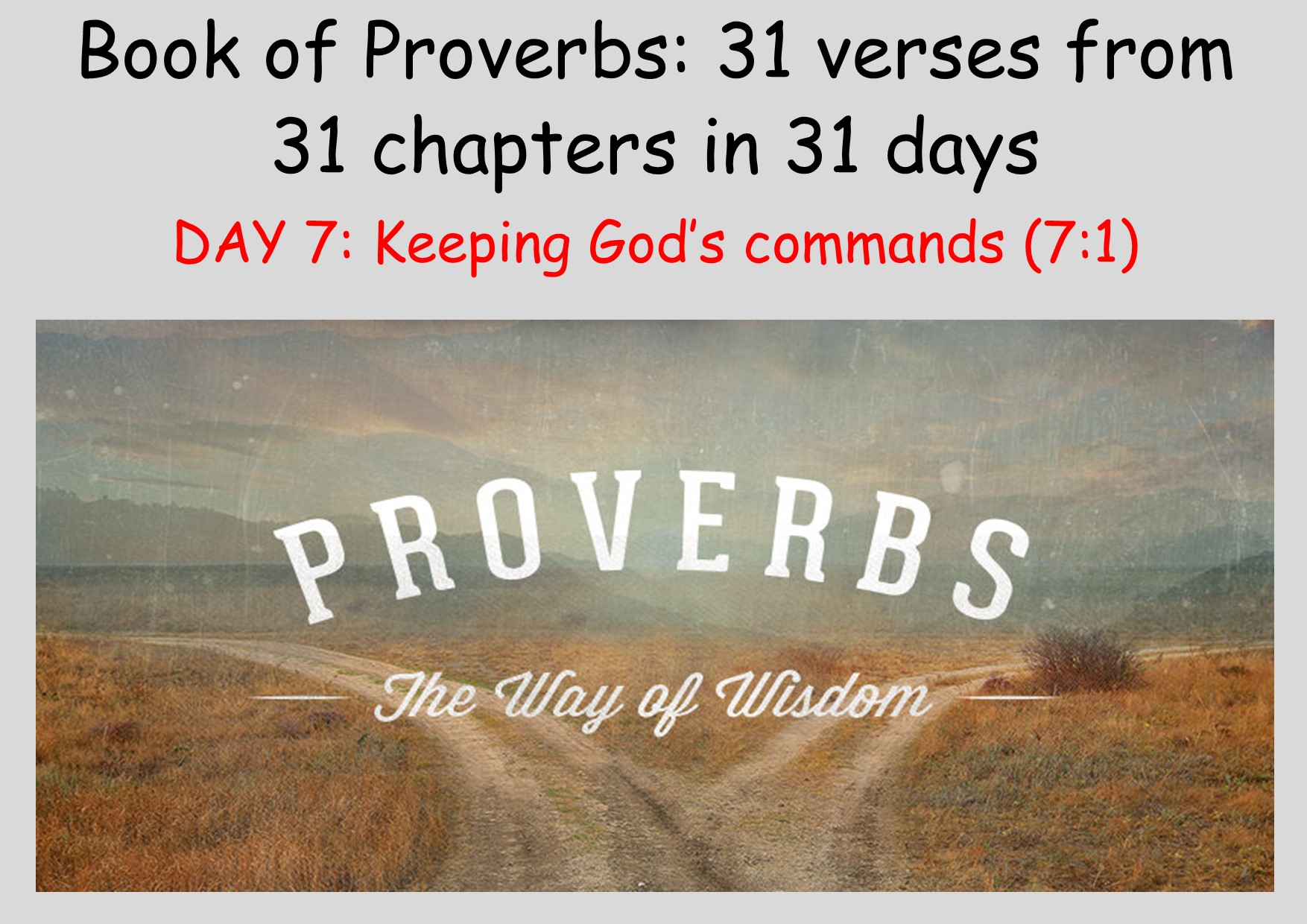 As already noted, and will see more of in later chapters, Proverbs is packed full of wisdom relating to many different aspects of life. Slightly frustrating for one trying to cover as many of these, which seem just as if not more pertinent than Solomon’s obsession with immoral women, in 31 days’ worth of meditations, for yet again Solomon devotes the majority of this chapter to a theme he has already done, so it seems, to proverbial death – that of the lustful, predatory woman intent on seducing “my son” using crafty flattery. Ours is not to argue why the Bible emphasises certain things more than others. Such scenarios are clearly important as he lays out how the woman entraps and the gullibility of the man along with his fate, which is “the way to hell” (1:27), when he succumbs. We might also infer that sexual sin in all sorts guises has a similar outcome. It is why, as pointed out earlier, we need our own intimate relationship with wisdom and understanding and: “to say unto wisdom, Thou art my sister; and call understanding thy kinswoman” (7:4) to prevent this, for by doing so we find the way of life as opposed to that of death. While we title our thought for today as “keeping God’s commands”, as far as Solomon was concerned, they are my (i.e. his commands) and his words, reminding us of the need to take heed of wise counsel, primarily a parental responsibility, but also from those who are wise.