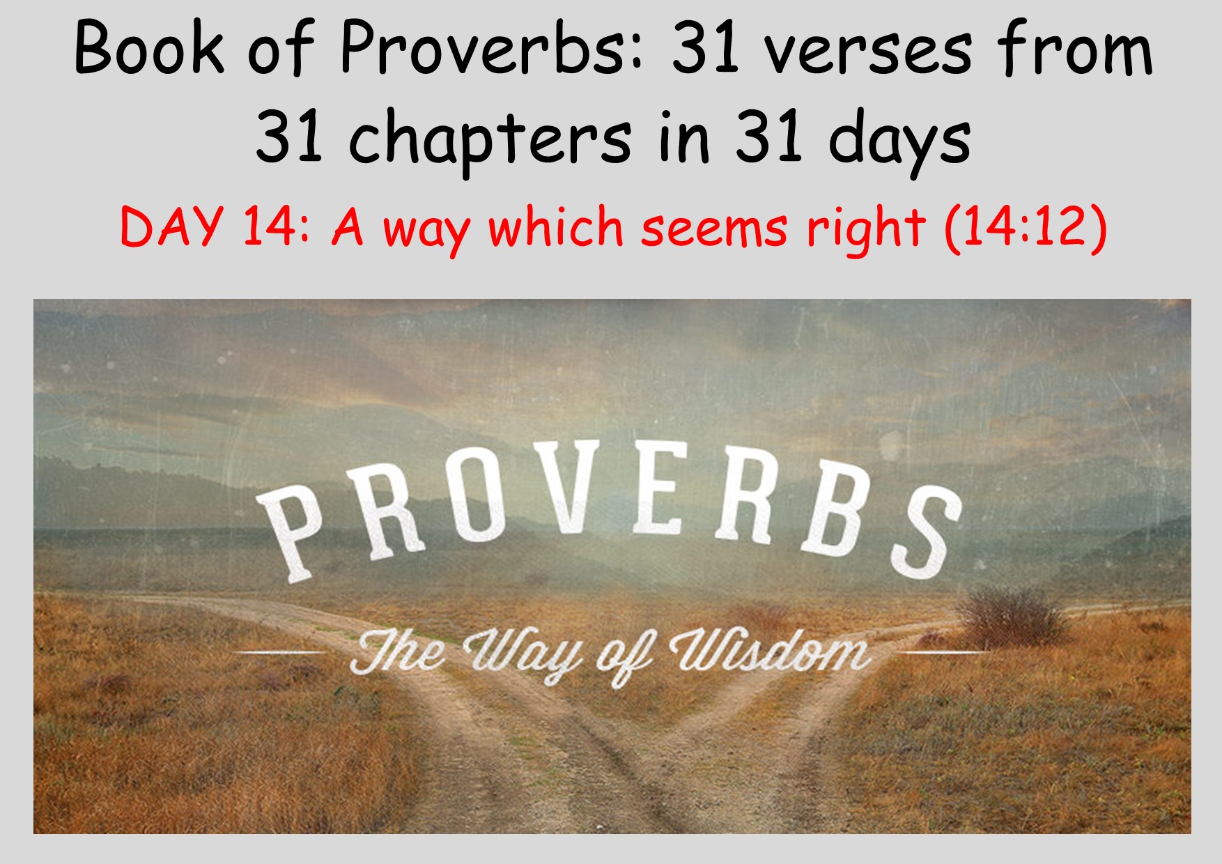 Before we consider three texts, including the above, let us first revisit three related themes, key to understanding Proverbs and specifically our three texts: righteousness, wisdom and the fear of the Lord; for example “Every wise woman buildeth her house: but the foolish plucketh it down with her hands. He that walketh in his uprightness feareth the Lord: but he that is perverse in his ways despiseth him. In the mouth of the foolish is a rod of pride: but the lips of the wise shall preserve them” (14:1-3) and “The wisdom of the prudent is to understand his way: but the folly of fools is deceit. Fools make a mock at sin: but among the righteous there is favour” (14:8,9). This places us in one of two categories: the wise and foolish, and poses the question, which one are we in? This matters because humankind likes to think it is right in its actions, and often proudly says so, but this belief can turn out wrong, even to the point of death.
