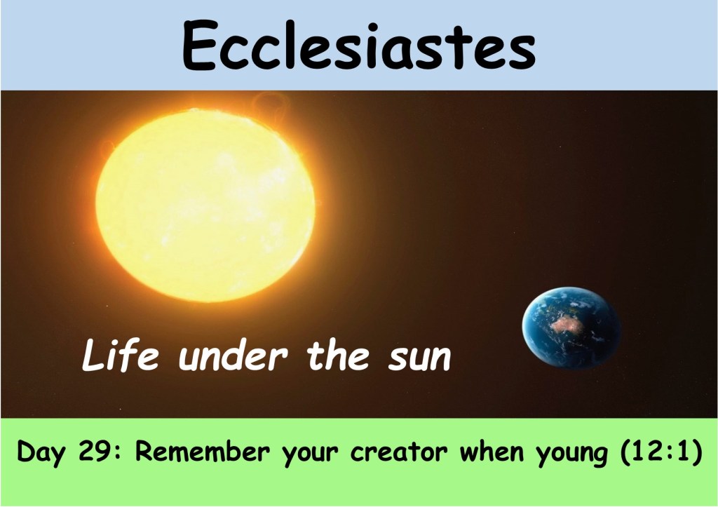 Prayer: Lord, we can think of young people who don’t remember their creator – we pray for them and may we who are older be examples, living lives for you.