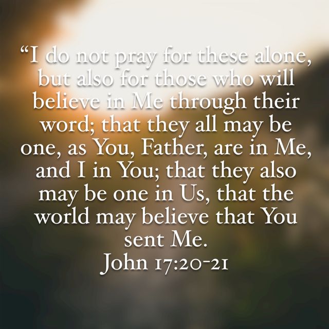 1 These words spake Jesus, and lifted up his eyes to heaven, and said, Father, the hour is come; glorify thy Son, that thy Son also may glorify thee: 2 As thou hast given him power over all flesh, that he should give eternal life to as many as thou hast given him. 3 And this is life eternal, that they might know thee the only true God, and Jesus Christ, whom thou hast sent. 4 I have glorified thee on the earth: I have finished the work which thou gavest me to do. 5 And now, O Father, glorify thou me with thine own self with the glory which I had with thee before the world was. 6 I have manifested thy name unto the men which thou gavest me out of the world: thine they were, and thou gavest them me; and they have kept thy word. 7 Now they have known that all things whatsoever thou hast given me are of thee. 8 For I have given unto them the words which thou gavest me; and they have received them, and have known surely that I came out from thee, and they have believed that thou didst send me. 9 I pray for them: I pray not for the world, but for them which thou hast given me; for they are thine. 10 And all mine are thine, and thine are mine; and I am glorified in them. 11 And now I am no more in the world, but these are in the world, and I come to thee. Holy Father, keep through thine own name those whom thou hast given me, that they may be one, as we are. 12 While I was with them in the world, I kept them in thy name: those that thou gavest me I have kept, and none of them is lost, but the son of perdition; that the scripture might be fulfilled. 13 And now come I to thee; and these things I speak in the world, that they might have my joy fulfilled in themselves. 14 I have given them thy word; and the world hath hated them, because they are not of the world, even as I am not of the world. 15 I pray not that thou shouldest take them out of the world, but that thou shouldest keep them from the evil. 16 They are not of the world, even as I am not of the world. 17 Sanctify them through thy truth: thy word is truth. 18 As thou hast sent me into the world, even so have I also sent them into the world. 19 And for their sakes I sanctify myself, that they also might be sanctified through the truth. 20 Neither pray I for these alone, but for them also which shall believe on me through their word; 21 That they all may be one; as thou, Father, art in me, and I in thee, that they also may be one in us: that the world may believe that thou hast sent me. 22 And the glory which thou gavest me I have given them; that they may be one, even as we are one: 23 I in them, and thou in me, that they may be made perfect in one; and that the world may know that thou hast sent me, and hast loved them, as thou hast loved me. 24 Father, I will that they also, whom thou hast given me, be with me where I am; that they may behold my glory, which thou hast given me: for thou lovedst me before the foundation of the world. 25 O righteous Father, the world hath not known thee: but I have known thee, and these have known that thou hast sent me. 26 And I have declared unto them thy name, and will declare it: that the love wherewith thou hast loved me may be in them, and I in them.