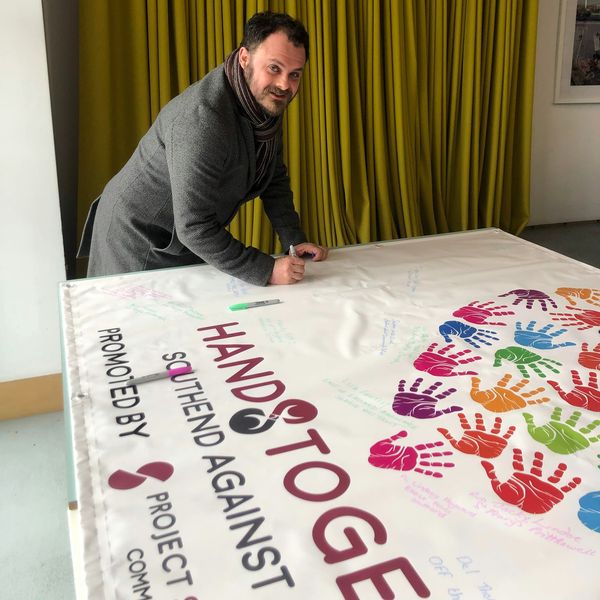 “Project Southchurch” and “Twenty One Southend” are two local entities (check out their Facebook pages, here and here for more info). I hadn’t heard of either a week or so ago but both are to be commended. For this past Friday, Project Southchurch hosted a “Southend Against Hatred” event held at Twenty One, Southend’s cultural and community cafe venue on Southend Seafront (and because I couldn’t find it first time, despite knowing my town (so I thought), I should mention it is dead opposite Adventure Island’s Ferris Wheel on the other side of the road, by the bottom of the glass lift and 50 metres from the Pier ticket office). It brought together many of Southend’s good and great from the faith and various statutory and voluntary groups and humbler types like me, declaring we are united against hatred (in the light of David Amess recent murder). It was a positive occasion and I met up with old friends and some new ones. Part of the proceedings was to sign the “Southend Against Hatred” declaration. I hope this bodes well to how we go on from now as a town that thanks to David is now a city.