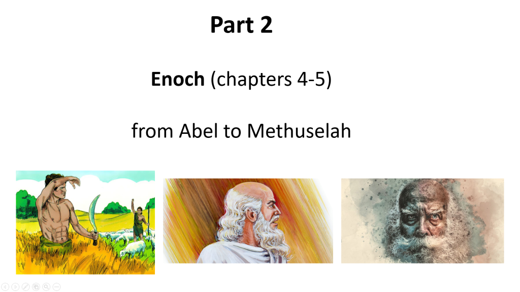The Book of Genesis (Part 2) The Book of Genesis (Part 2) Part 2: Enoch (chapters 4-5) – from Abel to Methuselah Slide 1: Slide 2: Slide 3: Slide 4: Slide 5: Slide 6: Slide 7: Slide 8: Slide 9: Slide 10: Slide 11: Slide 12: Related Standard