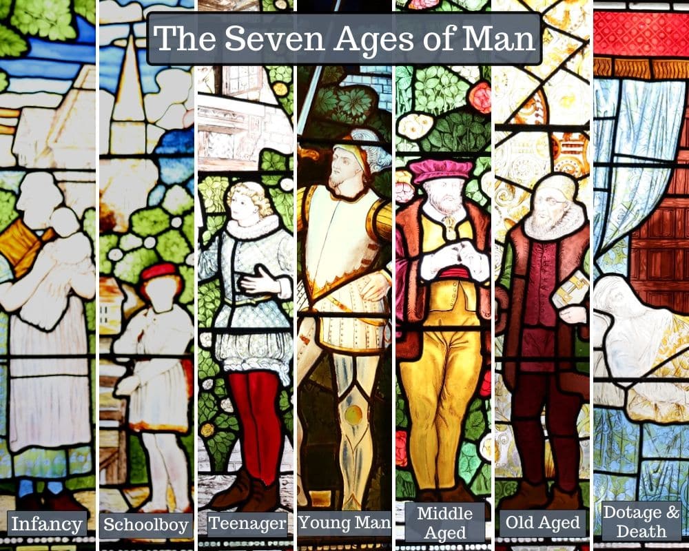 In this monologue Jaques starts by explaining that “All the world’s a stage, And all the men and women merely players”, then goes on to describe these seven stages of life that men go through in some detail: