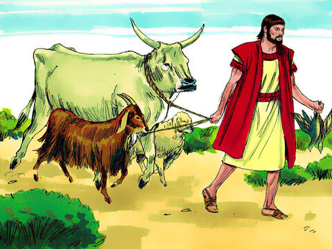 ‘Sovereign Lord, how can I know that I will gain this land?’ Abram asked. God told him to bring a heifer, a goat and a ram, each three years old, along with a dove and a young pigeon. – Slide 5