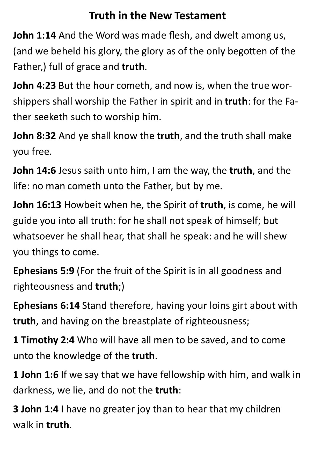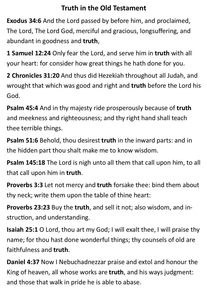 In winding up, I would like to share ten Old Testament texts and ten New Testament texts that refer to truth (out of the 224 times the word “truth” crops up in the KJV Bible) worth meditating on. I am not calling readers to be truthers but I am calling them to be faithful to the Lord, who requires us to seek and be beholden to the truth.