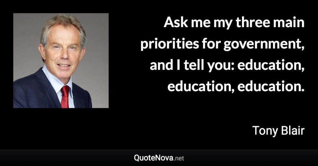 It was Tony Blair, UK Prime Minister (1997-2007), who became known for coining his “education, education, education” catch phrase when describing the priorities of his government. It is also my priority and, while I can cite my having three degrees as evidence of being an educated man, I find increasingly in my advancing years there is so much more education I need in order consider myself the fully-rounded, finished product. While my writings have taken me in other directions, education remains a passion. I am also mindful that many bad people, e.g. Stalin and Hitler, have also made it their passion, in order to control the way children are educated, with the view to indoctrinate them in their dubious ideologies, and, if you are into conspiracy theories, there is the globalist cabal seeking to take over educational institutions (some say they have succeeded to a good extent) with much the same idea in mind. My favourite quote though on how to influence young minds is by the Jesuits, borrowed from Aristotle.