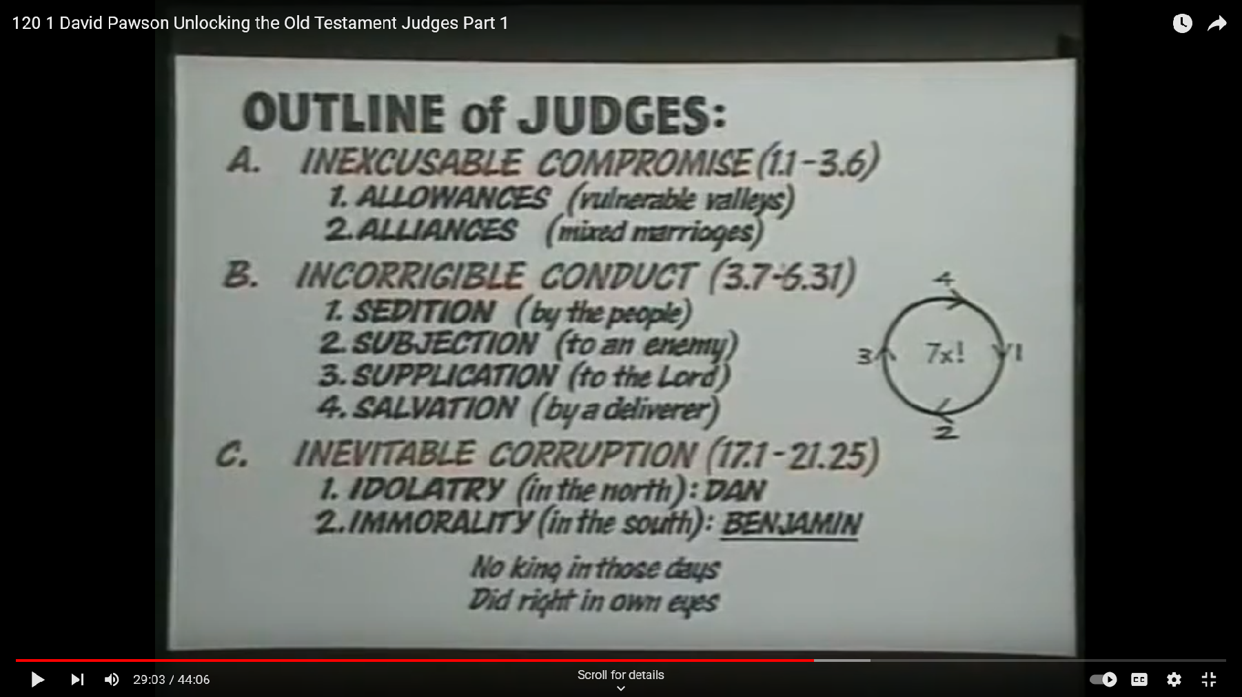 Sadly, the Book of Judges does not end on high. The last verse in the Book, which is a repeat of a statement made several times in the Book, concerning there being no king of Israel in those days (they lacked leaders) and people doing their own thing. There are many things to watch out for in this book, which is nominally about judges, who in effect are divinely appointed trouble shooters with flaws, yet anointed as well as being appointed by God. These were not kings as such and usually only led some of the tribes. They were usually raised up after Israel sinned, (as part of God’s judgment) were oppressed by some the inhabitants of the land they lived in (who God promised they would drive out or at least subdue, IF obedient to Him) and then upon calling on God, were delivered under the Judges. As often is seen in the OT, we note the contrast between a faithful God and an unfaithful people.