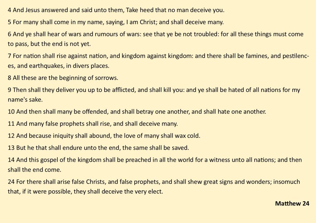 Six months ago, I wrote “Great Reset, Great Awakening and Great Deception”, when I pondered on where things were going and suggested, along with a bumpy ride, we may be in for a mixture of all three, even though I hoped there would be a Great Awakening of the right sort, in terms of a re-energised church, people coming to faith in the true Messiah and all sorts of evils, after being exposed, are swiftly dealt with. As for deception, I have little doubt most inhabitants of planet earth are deceived and, sadly, many Christians, including the shepherds of the flock. It is not just a matter of the great doctrines of faith that have been argued over this past two millennia but what is happening in the world: Covid and Ukraine to name but two, as well as the adoption of wokeism and all sorts of error the Devil is past master in pushing, which he is intent on doing so still. We are in an intense spiritual war; it has ever been thus and we need to put on the whole armour of God to withstand. I am also of the view no Christian group has the whole truth and many have succumbed to error just as Jesus said would happen. Be aware: Satan is at his most dangerous when appearing as an Angel of Light rather than the Prince of Darkness. We do well to consider the often quoted words of Jesus, which still seem strangely relevant today: