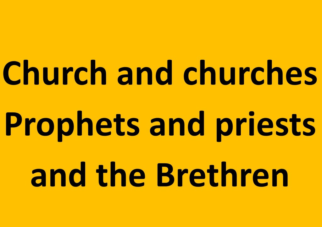 It is true to say the subject of “Church and churches; prophets, priests and the Brethren” gives rise to a wide range of views among good and learned Christians, and yet is an important one.