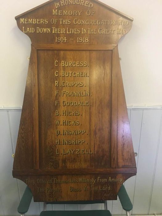Soon after WW1 ended, my church decided to erect a memorial board and one half of it (the other half is lost) was on display today and this contained ten names (presumably around ten more would have been on the other board). Someone who did the research was able to locate details of everyone named, including rank, regiment, age, family connections and address (all living near the church that we still meet in). A salutary point to note is there were two pairs of deceased service men who had the same surname and it was confirmed one pair were brothers (there being many instances of members from the same family dying in battle during WW1).