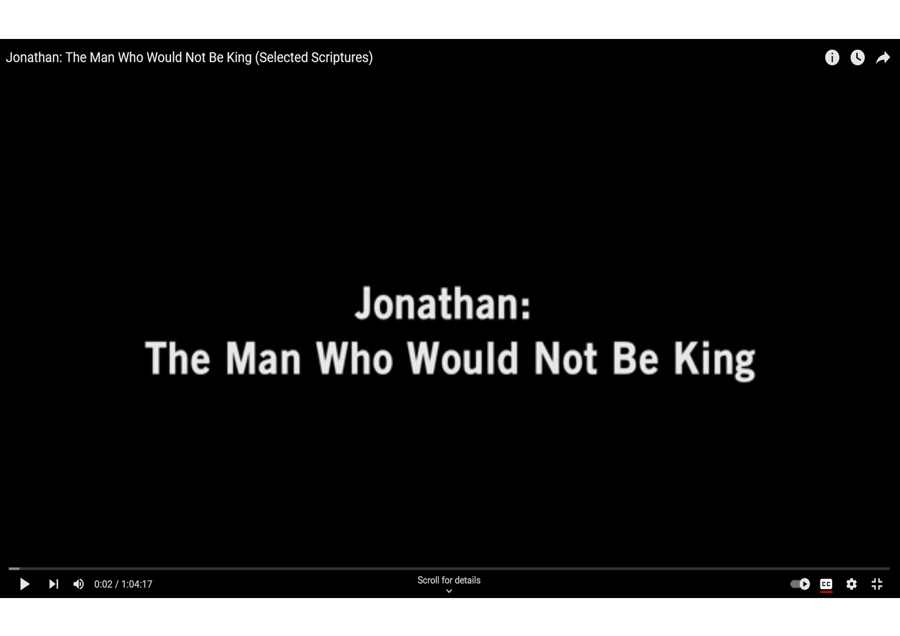 Our series is about David but it is worth considering Jonathan, which one well known Bible commentator did splendidly in his “Jonathan: The Man Who Would Not Be King” presentation.