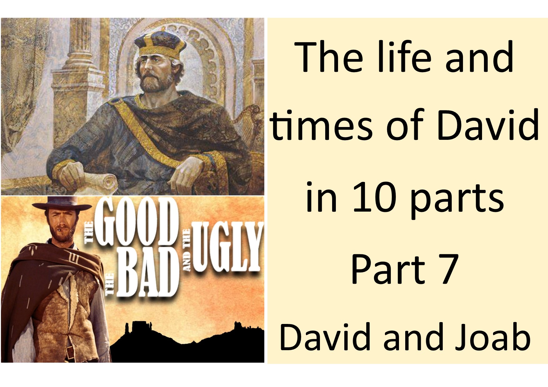 We can see from the titles of these two (helpful) “Joab” video presentations, “Joab-A Fallen Hero” and “Joab: The Merciless Politician” there was a side of Joab that was far from sweetness and light, for not only was he a fearless fighter but he was a ruthless one too. The two occasions when he was demoted from being leader of David’s army, showed this. Following the death of Saul, and the war between the armies of Judah led by Joab and Israel led by Abner there was a truce called but Joab murdered Abner, who had earlier killed his brother, in revenge even though an amnesty had been given. He regained his position as a reward for his brave and audacious attack on Jerusalem. After the war between David and Absalom, who Joab killed despite being ordered not to, Joab murdered Amasa who David had appointed to be commander of his army (after commanding Absalom’s one) and, having regained authority, subdued the remainder of Israel in opposition to David.