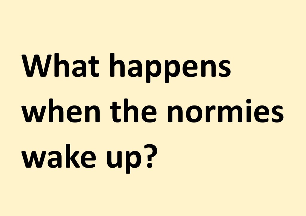 Whilst normies by definition may not agree with the above, many do show concern at the rising tide of evil in the world, the transhuman agenda, restrictions on free speech, wokeism like much that is to do with “Black Lives Matter” and the untoward effects of the increase in unrestricted immigration. Moreover, many non-normies have detected in recent months normies waking up to what is going on and if that is what is needed to overturn the few controlling the many with nefarious intent, then that has to be a positive sign. We need to be prepared though, for just as the thought of bad people doing bad things and getting away with it has had a psychological impact on non-normies, so will finding out those they thought were good are bad (evil even) will have a similar impact on normies. Furthermore, given there is nothing new under the sun. We learn from history that when normies wake up to what their oppressors are doing, they often rebel, sometimes violently, ending up taking over government. It is a possibility that oppressors are often aware off, doing what they can to stop this from happening.