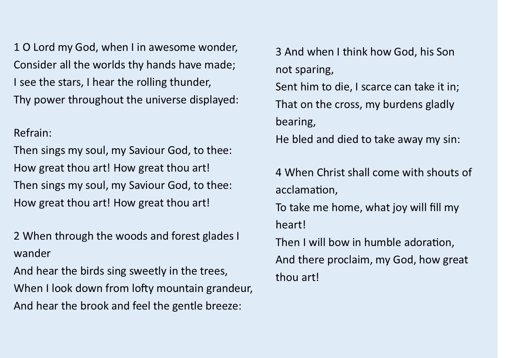 O Lord my God, when I in awesome wonder