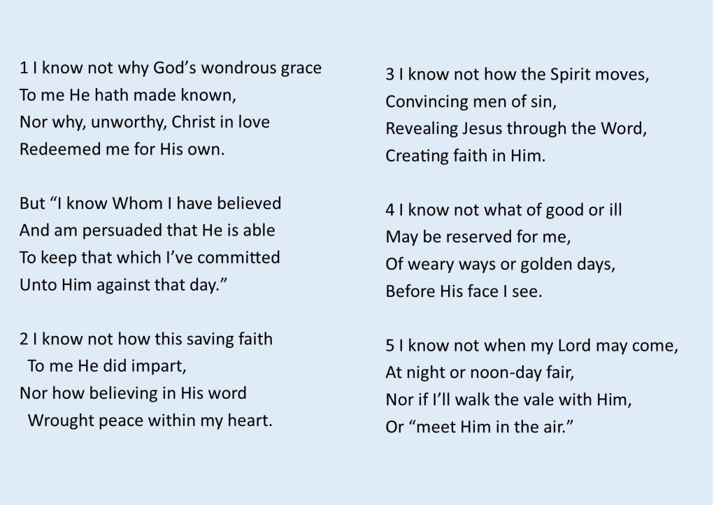 I know not why God’s wondrous grace