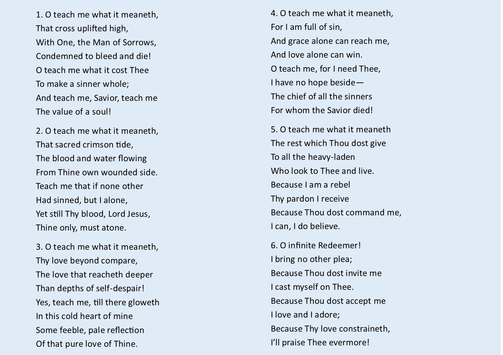 This hymn never fails to move me with its message that, given it is profoundly true, requires a fitting response by all who sing it.