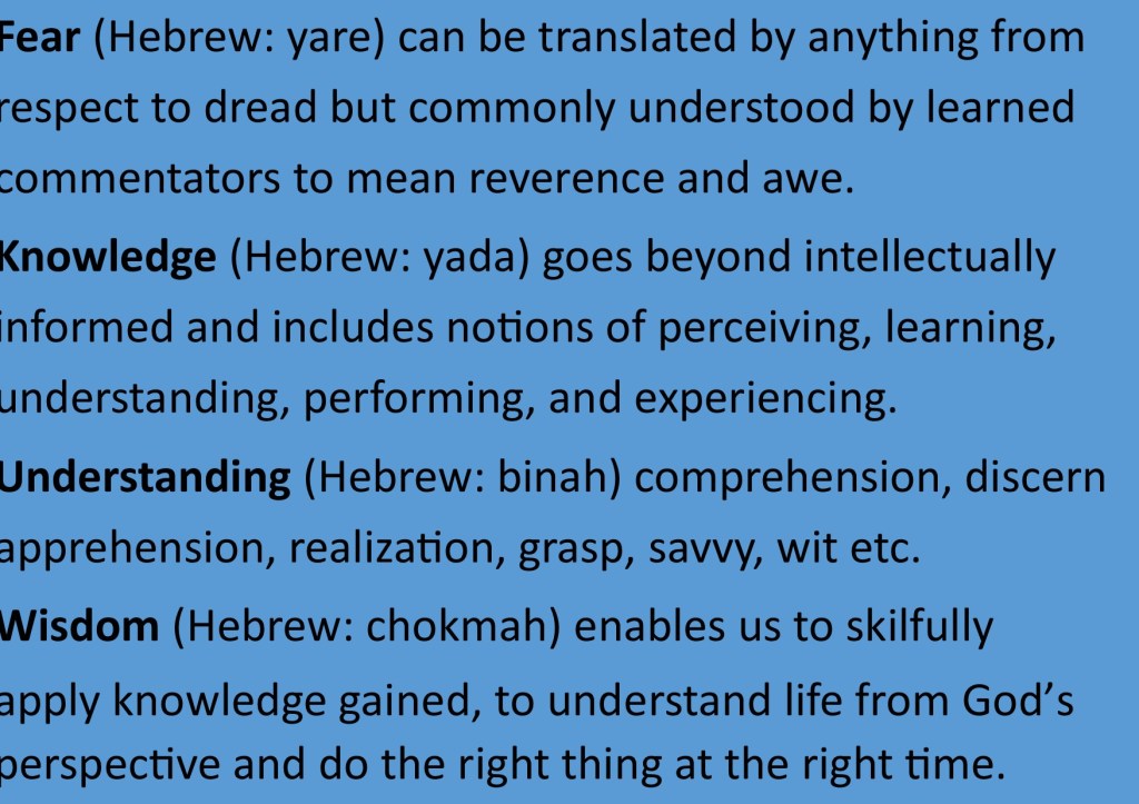 It has been said: “the wisdom of Proverbs describes how godly character generally leads to success. Ecclesiastes tempers this, warning rewards are not guaranteed, as a kind of “crookedness” has come into our world. The book of Job goes further, exploring how righteous people sometimes suffer.” But all three agree – getting wisdom along with knowledge and understanding must be a priority for a believer and it begins with the fear of God.