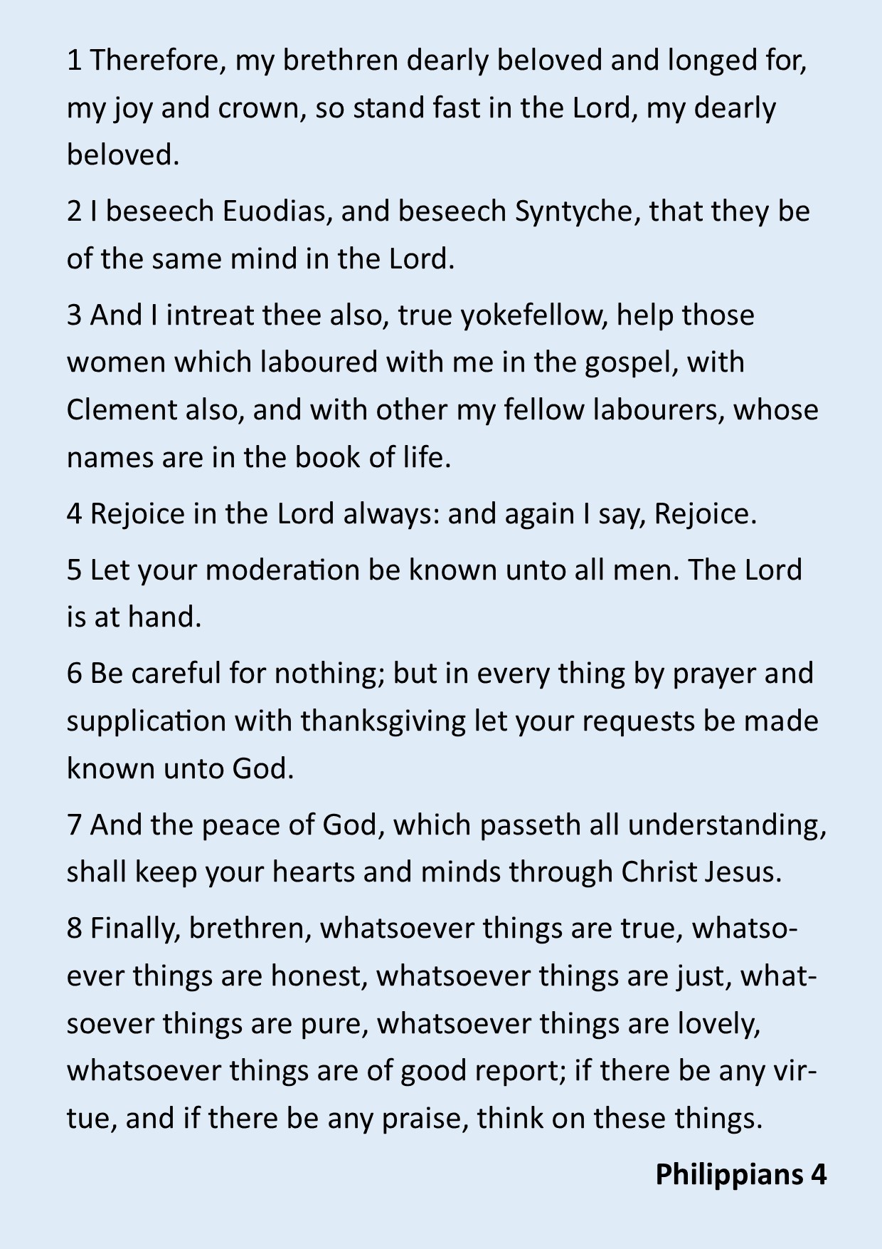 If we consider our text in context, there is so much powerful stuff preceding it, including the verse to do with always rejoicing in the Lord, something I often fail to do; praying to the Lord concerning all matters, something I don’t do nearly enough of; and enjoying the peace of God which passes all understanding, a salutary reminder when things seem far from peaceful. And then onto Chapter 4 and there we get to today’s text. True, honest, just, pure, lovely, good report (for KJV readers), and true, noble, reputable, authentic, compelling, gracious if we are reading from something more modern, like the Message. These are the very things that we are told to think regarding as opposed to things we might think about, especially when reading about bad things happening in the world and we should avoid dwelling on thoughts not edifying.