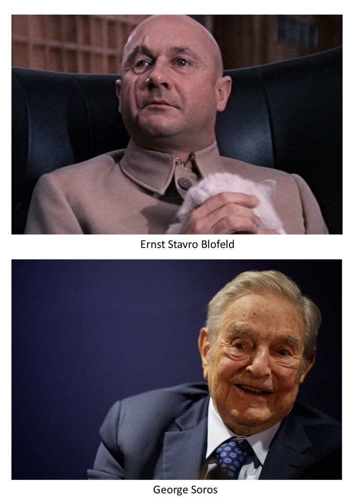 Like Klaus Schwab, his Eastern European (imo ultra baddie) counterpart, George Soros reminds me of the fictional James Bond ultra-villain, Ernst Stavro Blofeld (although Mel K’s guest, who I will get to, liken him to Lord Voldermort, Harry Potter’s antagonist). While Schwab has somewhat taken over from Soros as one of the main bogeymen when it comes to calling out members of the globalist cabal that wants to take over the World, there is little doubt that Soros remained active behind the scenes, bank rolling many organisation,s often with noble, altruistic sounding names, yet up to no good. Interestingly, I wrote my “George Soros” blog six years ago, yet my circumspect conclusions seem strangely relevant today: “I realize there is a lot more digging that I need to do before coming to a fully rounded view of someone who claims good intent and arguably delivers bad outcomes, not just in the US but the world at large, if he is indeed part of the hidden hand leading the world on a path toward catastrophe”.