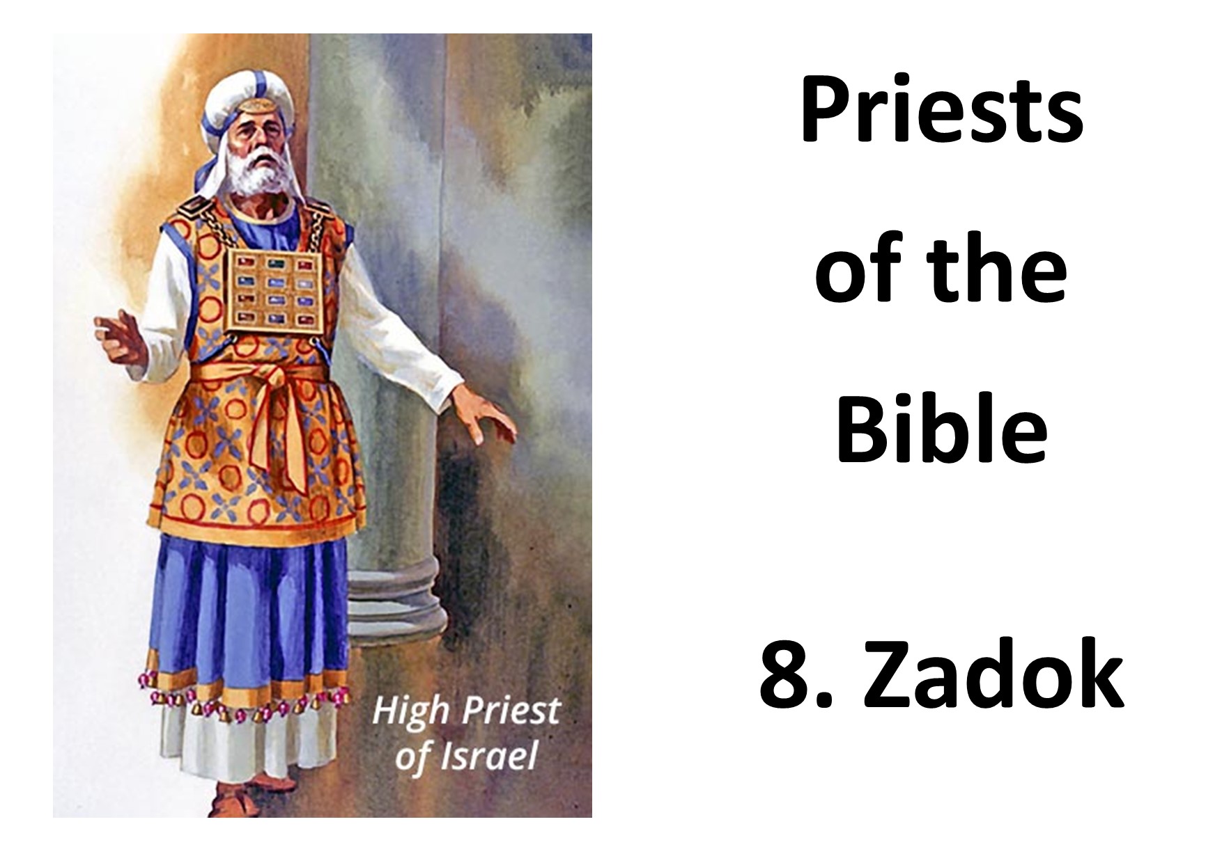 It is worth noting, as we look far into the future, to Ezekiel’s vision of the Temple (Ezekiel 40 – 48) during the period of the Exile of Judah to Babylon, Zadok is referenced by name four times as he looks ahead at a Temple yet to come, with the priests being Zadok’s descendants. There is debate among scholars what this Temple that has never been built refers to and whether literal or actual, and if actual when it is meant to happen, and this is something I consider in my book “Prophets of the Bible”. One stand out feature is the importance of holiness and the role of the Zadok priesthood when it came to “teach my people the difference between the holy and profane, and cause them to discern between the unclean and the clean” Ezekiel 44:23. In wrapping up, I refer again to the prophecy the unnamed prophet gave to Eli, in particular: “And I will raise me up a faithful priest, that shall do according to that which is in mine heart and in my mind: and I will build him a sure house; and he shall walk before mine anointed for ever” 1 Samuel 2:35. The prophet was looking far into the future and was merely passing on the words of the Lord, even when with limited understanding, but one wonders if these words somehow applied to Zadok.