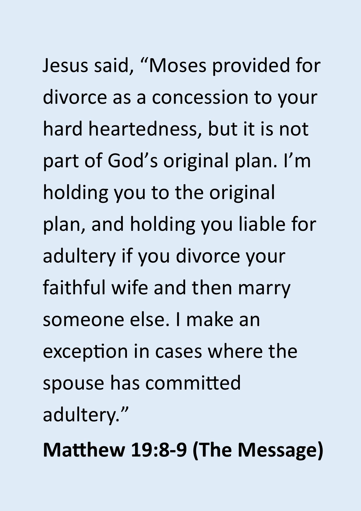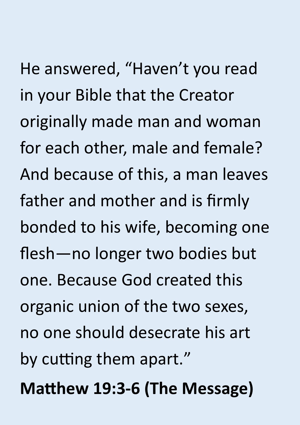 Going back to Jesus’ teaching, and in the same discourse covering marriage and gender, I am reminded He dealt forthrightly with what was once another thorny subject in church circles: marriage and divorce. I have noted a tendency among Christians to get on their holy high horses on matters that don’t affect the personally and ignore those that do, evidenced by the number of Christians who are divorced and have re-married. It is not an issue that has bothered me much in either a personal or pastoral capacity and one I feel ill qualified to pronounce on, feeling compassion toward sincere Christians I know who are in that situation, arguably for good reasons. My point is that we need to take the teaching of the whole Bible seriously, including that of gender assignment, marital fidelity and sexual purity, and not to cherry pick the parts we like.