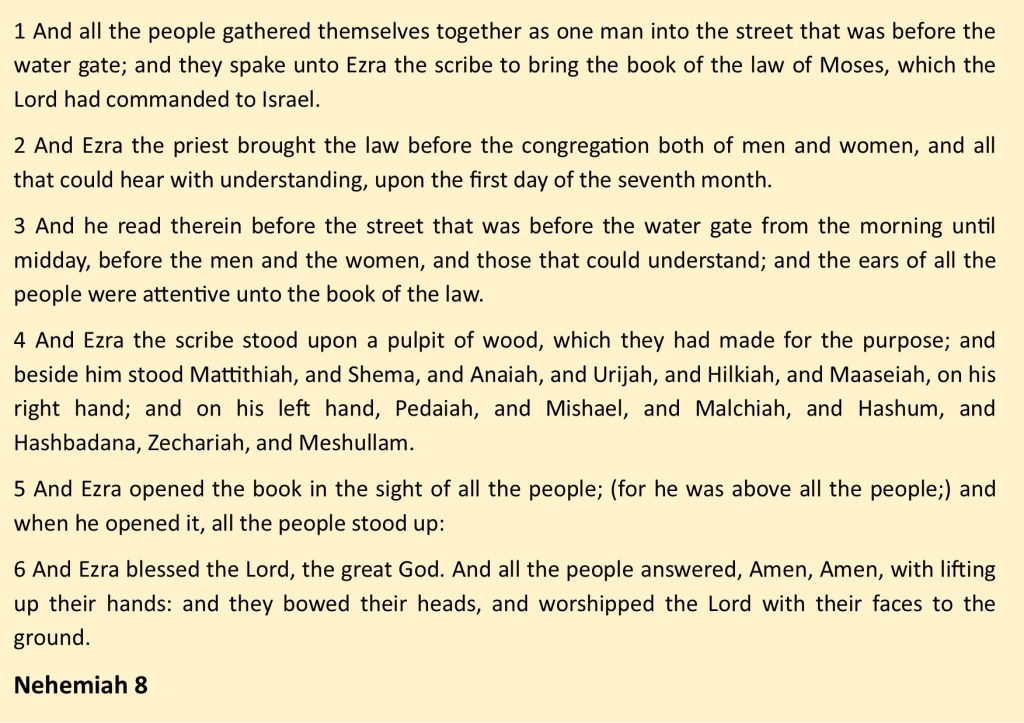 Concerning Ezra’s dedication to studying the Law, his desire that others know and follow it, we see an example later in Nehemiah 10 when he opened the Book of the Law and read it to the people. This led to a mini revival and while all too short lived (evidence of which is found in the Book of Malachi, the final prophet of the Old Testament, revealing God’s displeasure) it showed what could and should have been as we enter the 400 year Inter-testament period.