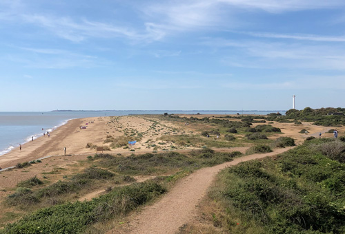 From that point, one can either turn right and walk through a nature reserve (no blackberries to pick this time of year but lots of rabbits for Lin to photo), ending up at Landguard and what is a busy as ever impressive dock area near to the mouth of the River Orwell, or turn left and head towards the disappointing pier and if energetic enough (now, not so) walk on and end up at the mouth of the River Deben.