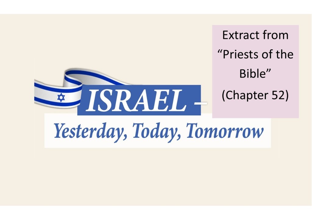 I offer this as one of the chapters of my book that I did not plan on writing, but in the light of the Hamas attack on Israel 7th October 2023 and with the eyes of the whole world now turned onto Israel, ranging from very pro- to very anti-, along with Israel’s significance both relating to this book and end times prophecy, it was a ‘no brainer’ for me to want to write something. Israel goes right to the heart of the subject of this book that is mainly about Jewish priests of the Bible and, even though I am revisiting some of what I wrote originally, I am doing so in the light of new knowledge and fresh insights. I want to share what I am finding, notwithstanding there are those with a greater knowledge than I possess and with greater intellect and understanding of the ways of the Almighty etc., including some who possess that all important Jewish perspective that I lack, and may see some things differently to me.
