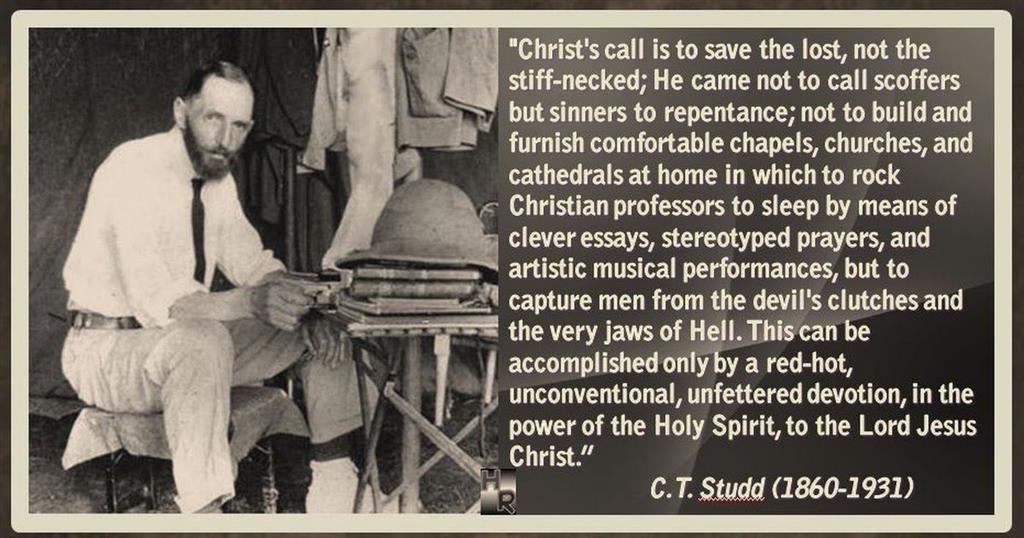 As for a final thought, it seems obvious. C.T. Studd was not perfect (like many a “driven” person with authoritarian tendencies) and I can imagine that I would have fallen out with him over some of the things he said and did, but he was a fantastic example of someone doing what Jesus said true followers of Him ought to be doing.