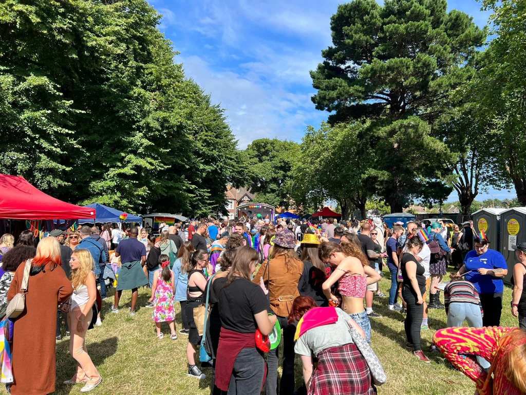 Today, I attended the Southend Pride event following the parade through the High Street that I missed due to another commitment. This is just a brief account of what I found and I have kept it deliberately “low key” to avoid unnecessarily upsetting those on either side of the “pride events – good or bad” debate. There were a number of reasons for my attending, including: it is part of my remit as a watchman on the wall, professional curiosity – I used to organise similar events, albeit not Pride and I reckoned it would be a chance to catch up with old friends who might be there (and were). While I did not spend long at the event (these days, I am physically not up for it), all three of those objectives were realised. At the time of arrival, not long after the “Festival” begun, there was already a good many in attendance and most seemed to be having a good time. The venue, Warrior Park, is on the small side given the number of stalls that were running. Part of my decision, after checking out the stalls and greeting some old friends, to leave, was that I found it was not particularly disabled friendly (not helped by the large crowd for such a small area) but was grateful to and touched by those volunteers who helped me when I needed it. This event (aimed at the whole community and not just LGBT associated) was, as expected, well organised as well as well supported.
