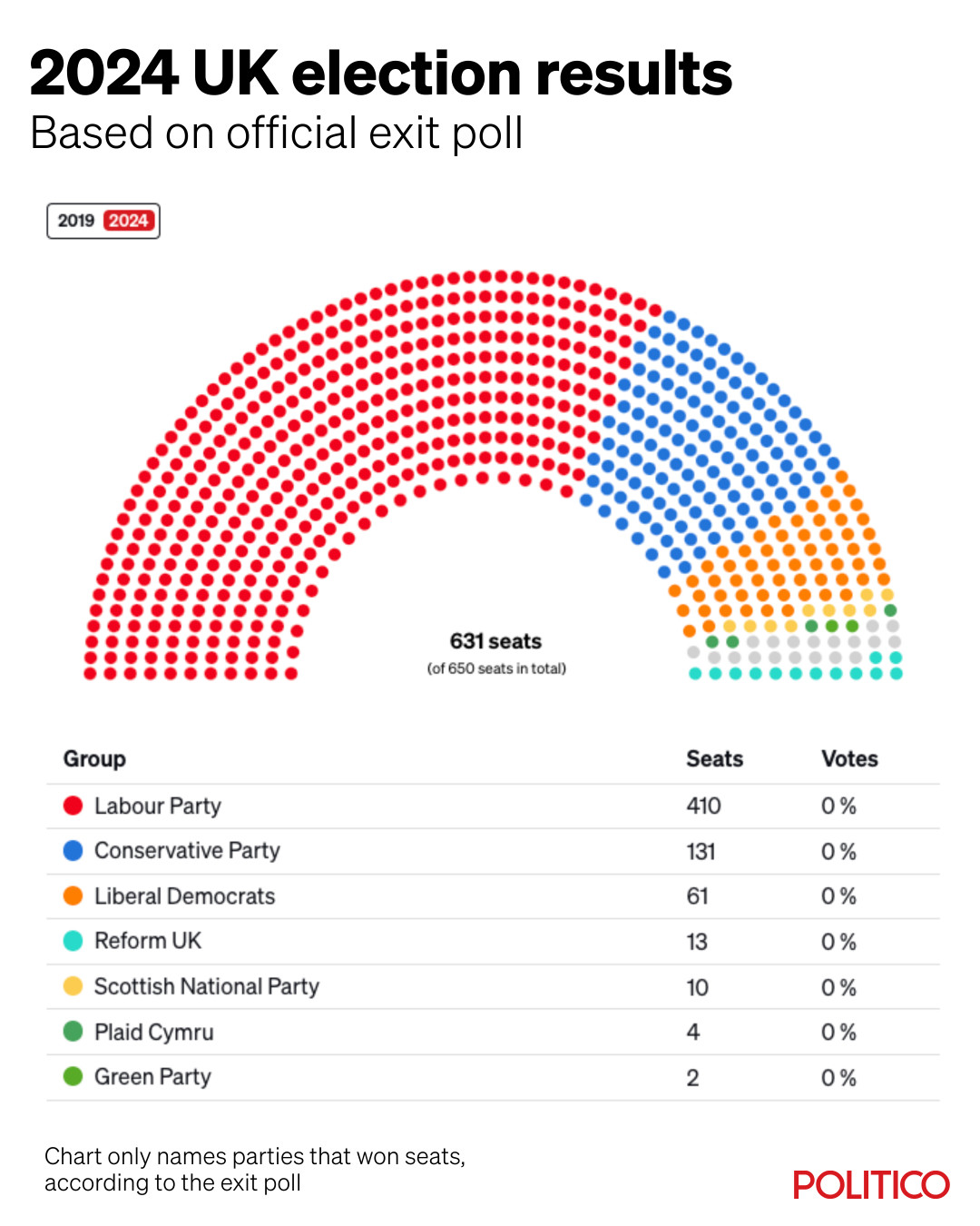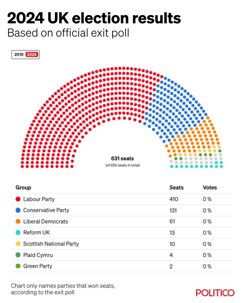 They got in largely because the opposition vote was split. Now they are in, they do well to remember what happened after Boris’ Tories were returned in a landslide. It is notable that the lower (60%) voter turnout compared to 67% in 2019, is indicative that while Labour won fair and square (although it appeared that Labour were better placed pushing their propaganda that the other parties) those who did vote were more interested in keeping Conservatives out than getting Labour in with many people (a number of whom I spoke with on the subject) torn to know who to vote for if voting at all.