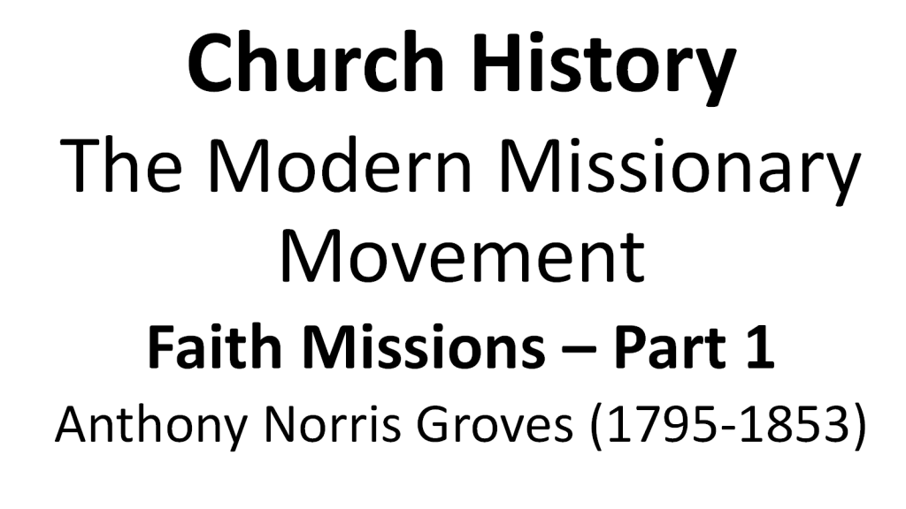 Just four days ago I posted my “Anthony Norris Groves (1795-1853) – Father of faith missions” article based on a book I had been reading by Robert Dann titled Anthony Norris Groves (1795-1853) – Father of faith missions that had dug deep telling us about the life and times of the man (ANG).