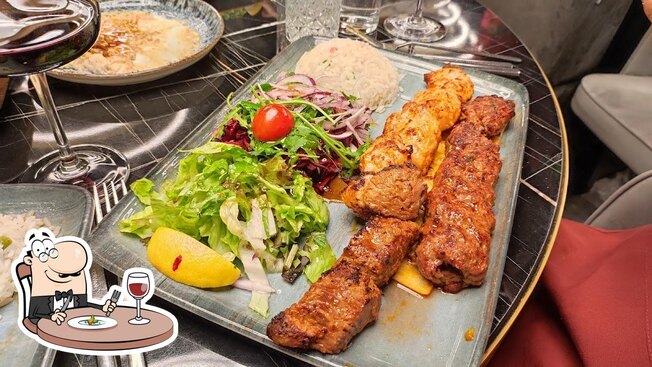 If we had come Sunday to Thursday we could have ordered from a reasonably priced set menu that had several options but since it was Friday we ordered a la carte where there was a large choice on offer, although most were with a Turkish slant. I ordered Sukuk (Turkish sausage) for my starter and also a glass of white wine from an extensive drinks selection; my wife ordered crispy calamari. Everything was well synchronised, especially given the size of the party, and timing for serving was nigh perfect with orders for members of the group taken at the same time. While we were waiting for our starter, we were served complementary naan type bread and dips (the Turkish equivalent of Indian poppadom with dips and just as nice). For main, I ordered the seafood mix and my wife ordered lamb ribs. Our mains came with salad that included lettuce, pickled cabbage and grated carrots and rice (which while not my preferred combination was quite acceptable). This was the case for most of the other members of our group. The food was hot and tasty and there was lots of it. So much in fact that a number didn’t manage to finish, no doubt full up. Not a problem since those who wanted it could take their left overs home in containers provided.