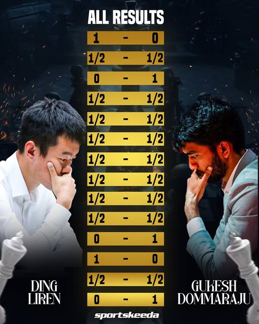 According to Wikipedia: “The World Chess Championship 2024, officially known as the World Chess Championship 2024 presented by Google, was a chess match between the reigning world champion Ding Liren and the challenger Gukesh Dommaraju to determine the World Chess Champion. The match took place between 25 November and 12 December 2024 in Singapore. It was played to a best of 14 games, with tiebreaks if required. The match was won by Gukesh 7½–6½ after 14 games. The win made Gukesh the 18th undisputed World Champion and, at age 18, the youngest of them”, and like many chess fans I have been following it.