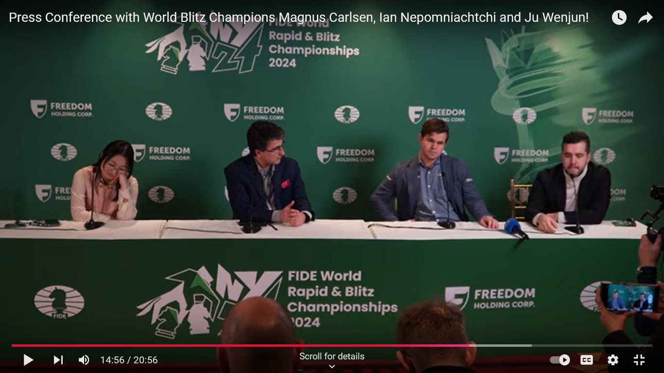 Good news – BREAKING: MAGNUS CARLSEN IS BACK! – check out this Take Take Take interview with Gotham (aka Levy Rozman) and Magnus. Today the Blitz tournament begins and defending champion, Magnus Carlsen, gets to defend his title – the outcome almost everyone wants, even though, as if making a point, Magnus turns up in jeans. I look forward to the games and my hopes for chess remain. And if you want more interesting and insightful interviews featuring Mr Gotham talking to one of the high profile chess super stars, including relating to the “Magnus incident” then why not check out: “Hans Niemann: “Magnus Planned The Jeans Scandal”” and “Hikaru Supports Magnus’ Decision”?