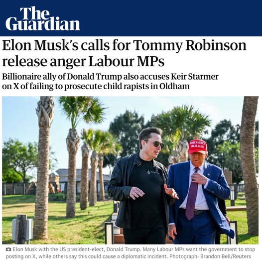 I confess I don’t know much about the two men featured in this video, Paul Thorne and Howard Cox, but I enjoyed their exchange of perspectives following Reform supporter, Elon Musk’s Tommy endorsement. Cox is an ardent supporter of Reform and Nigel Farage who hitherto has distanced themselves from Tommy Robinson in his quest for power. All this is relevant given Reform are currently the most significant opposition voice, but might do well to join others including Tommy, expressing similar concerns.