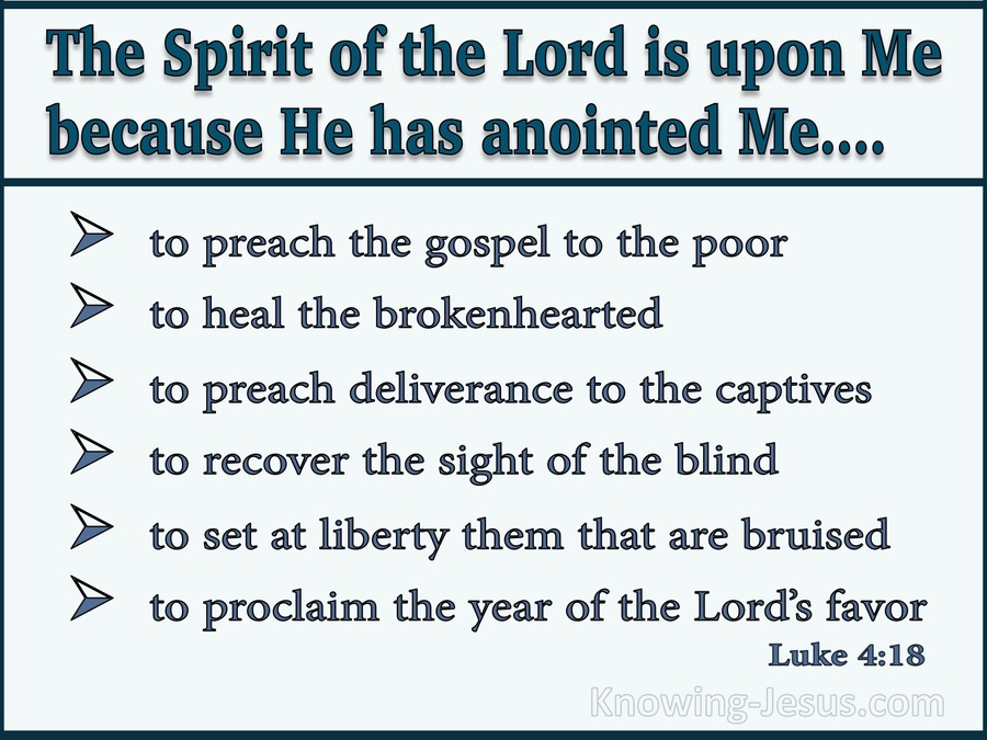 Always, we must follow the example of Jesus, who at the beginning of His ministry read from the Prophet Isaiah: “The Spirit of the Lord God is upon me; because the Lord hath anointed me to preach good tidings unto the meek; he hath sent me to bind up the brokenhearted, to proclaim liberty to the captives, and the opening of the prison to them that are bound; To proclaim the acceptable year of the Lord, and the day of vengeance of our God; to comfort all that mourn; To appoint unto them that mourn in Zion, to give unto them beauty for ashes, the oil of joy for mourning, the garment of praise for the spirit of heaviness; that they might be called trees of righteousness, the planting of the Lord, that he might be glorified” Isaiah 61:3. He applied that prophecy to Himself and for the next three years, before being put to death, carried out what Isaiah foretold, as we will discover when reading the Four Gospels.