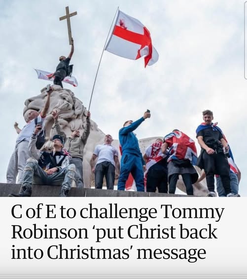 [Edit 07/12/2025: another of my nice detractor Christian friends (in fact it was three) posted a link to the following Guardian article on his Facebook page. It is titled: “C of E to challenge Tommy Robinson’s ‘put Christ back into Christmas’ message” (see here). It begins: “The Church of England is to launch a poster campaign aimed at challenging the anti-migrant message of Tommy Robinson, whose “Unite the Kingdom” movement has urged its supporters to join a carols event next weekend to “put the Christ back into Christmas”“. No doubt, we will see more reports of objections to the TR event (and supporting ones) in coming days!]