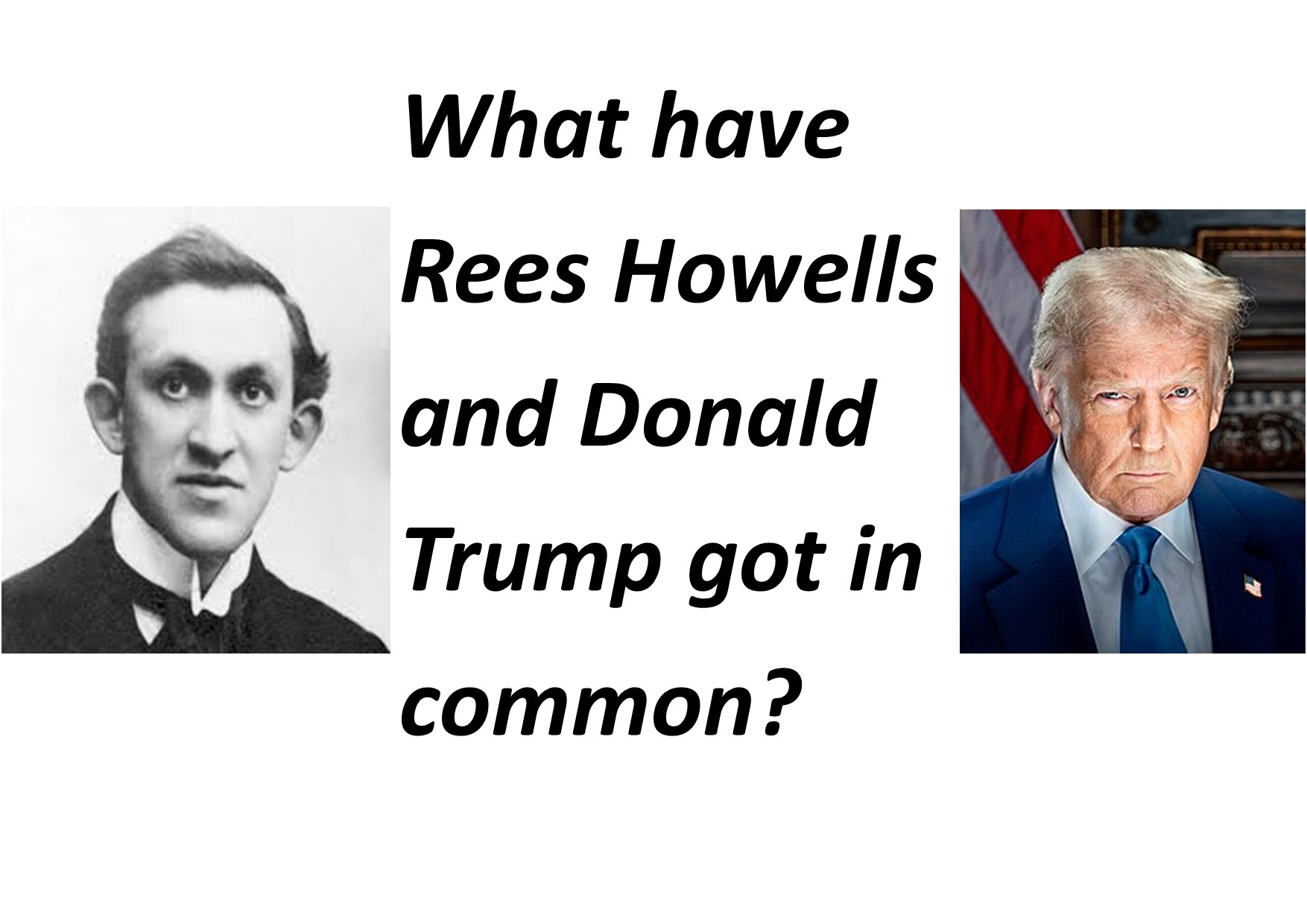 Before I wrap up and draw up an action plan and make conclusions, I would like to make an unlikely comparison, between Donald Trump and Rees Howells. According to AI: